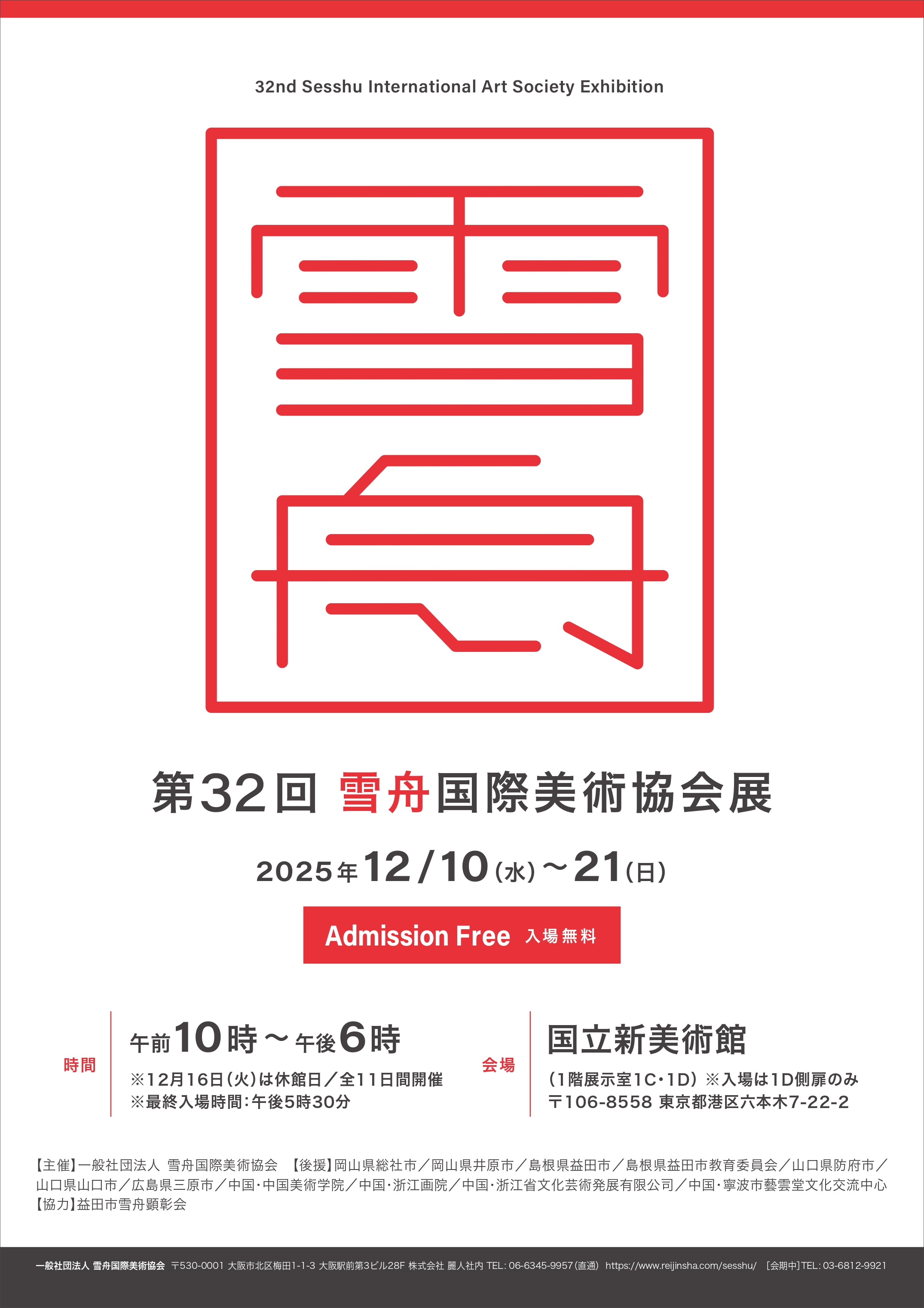 大学生以下・70歳以上・障害者手帳をお持ちの方及び付添者1名まで 無料- 最終日閉会時間