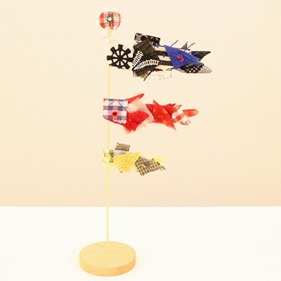 須藤玲子さんを講師に迎え、卓上に置けるミニサイズのこいのぼりを制作するワークショップを開催します。こいのぼりの材料として使うのは、色も柄も手ざわりもちがう、さまざまな布地。中には、「こいのぼりなう!」展で展示されているこいのぼりと同じ布地もあります。色とりどりの布地の中から、好きな色と柄を自由に組み合わせて、世界に一つだけのミニこいのぼりを作ります。