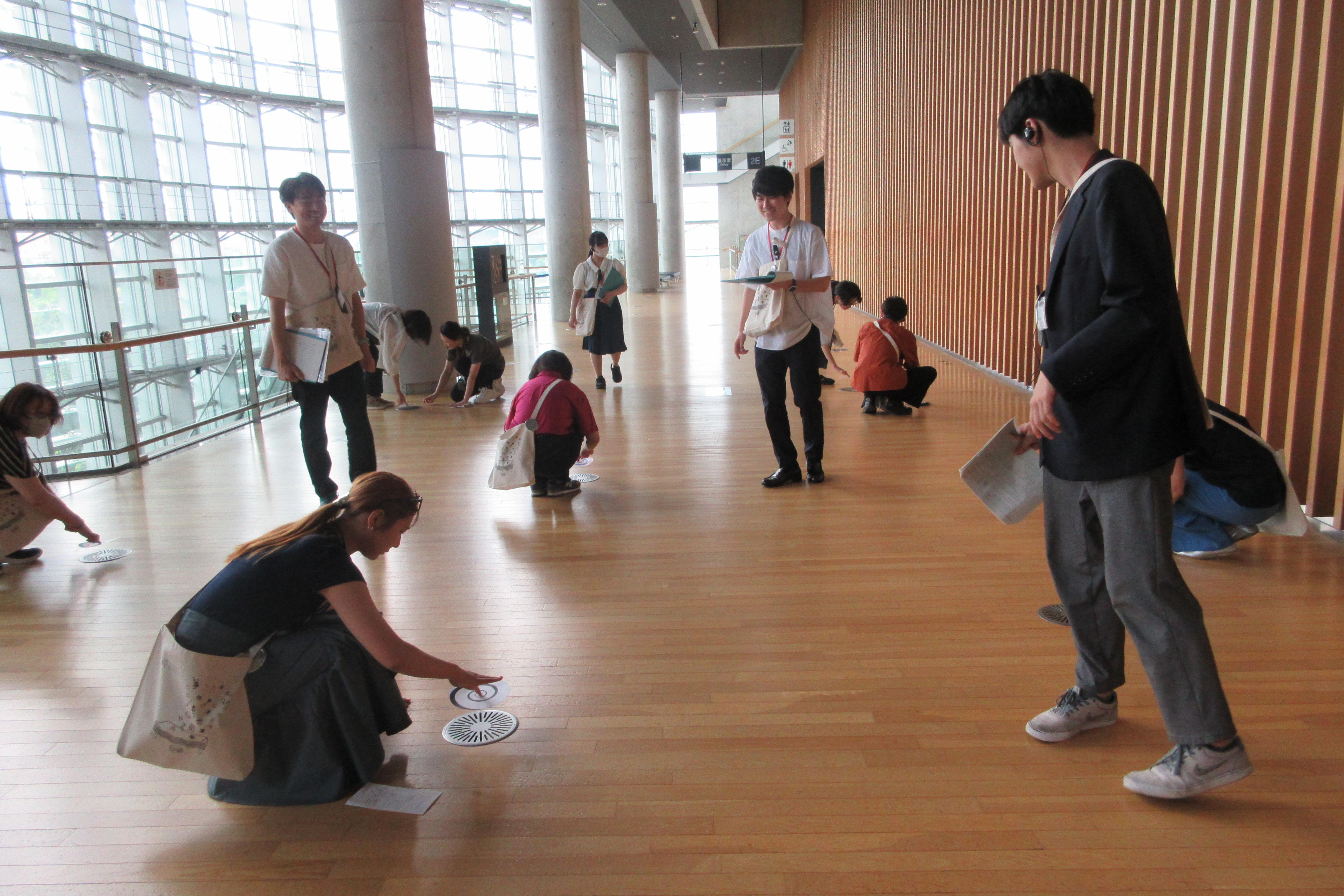 梅雨とは思えないくらいお天気に恵まれた6月下旬の週末に、抽選で選ばれた133人が参加する建築ツアーが開催されました。今回は、黒川紀章氏とともに国立新美術館を設計した株式会社日本設計の社員有志が解説を担当する「マスターコース」のツアーに加え、美術館スタッフや学生ボランティアがガイドを担当する「スタンダードコース」も3年半ぶりに再開しました。1日目の「マスターコース」では高校生から70代までの62人が、構造や空調の工夫など専門的な視点による解説に聞き入りながら、普段は目にできない様々な設備を見学しました。2日目の「スタンダードコース」では、小学5年生から60代までの71人が、美術館スタッフや学生ボランティアと共に和やかな雰囲気のなか、バックヤードや光壁といった美術館の裏側も見ながら館内を巡りました。緑豊かな季節に開催された建築ツアーは、「森の中の美術館」をコンセプトに設計された建物の魅力を、改めて堪能する機会となりました。